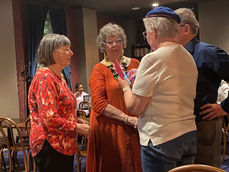 The relaxed style of the gathering was lovely. We were seated at two long tables and we were able to move around and connect with most people there.